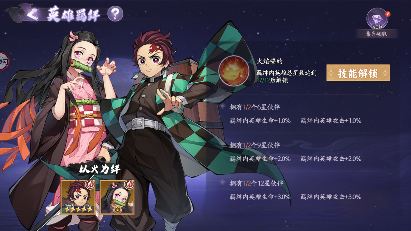 羁绊组合内的英雄,满足养成条件后,可使用【羁绊之力】激活和升级技能。