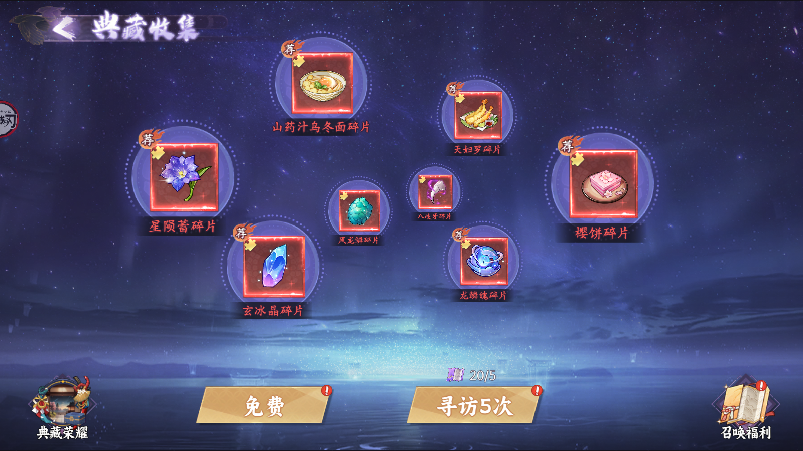 “寻宝”功能:通过寻访随机获得以上道具。