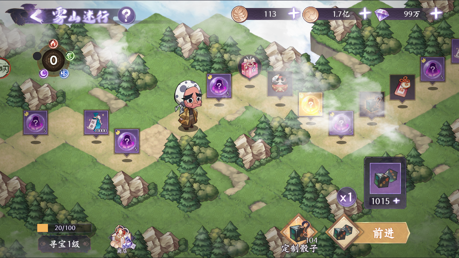冒险-雾山迷行系统为骰子跑图活动,玩家通过丢骰子获得步数,走到相应的位置,可以获得对应的奖励。