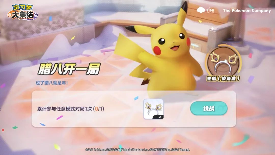 活动内容:活动期间,训练家参与任意模式对局1局即可获得训练家时装单品-发箍(惊角鹿),装扮浓浓冬日氛围感。