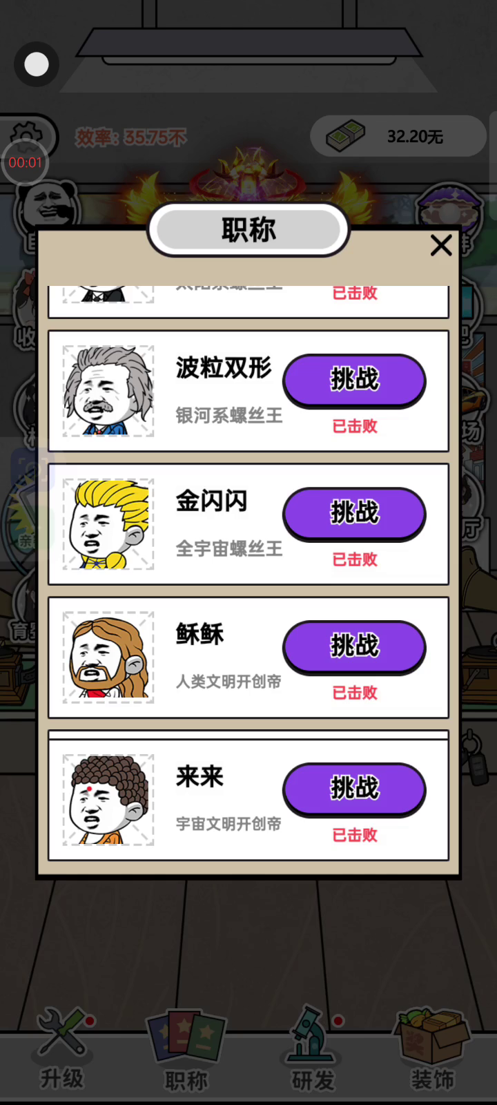 疯狂打螺丝是一款废柴工厂打工逆袭的模拟经营小游戏,玩家通过点击屏幕打工赚钱,通过pk获取更高职称,养家糊口走向人生巅峰