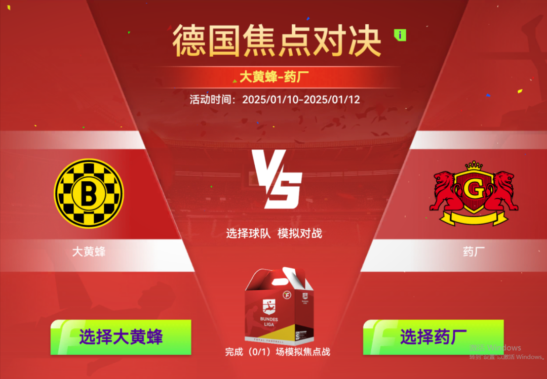 完成德甲焦点赛事,领取德甲完赛礼包!