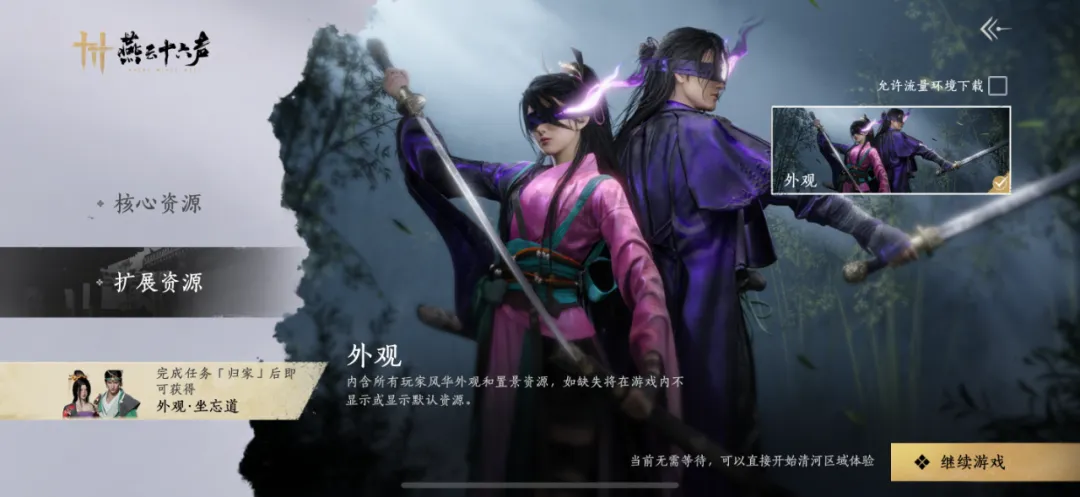 安装完成,启动游戏后,也推荐您完成核心地图资源和外观拓展资源的预下载,还可获得专属时装福利~
