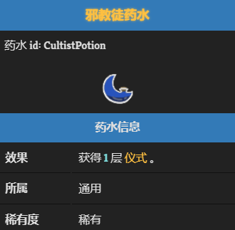 邪教徒药水是杀戮尖塔中的一瓶药水。
