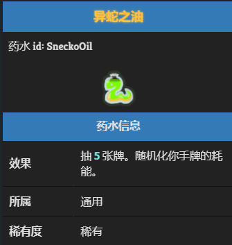 异蛇之油是杀戮尖塔中的一瓶药水。