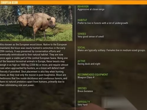 大家知道猎人野性的呼唤有哪些动物吗?这也动物有什么特性和弱点吗?今天小编为大家带来了猎人野性的呼唤全生物特性图文详解,一起来看看吧! 欧洲野牛