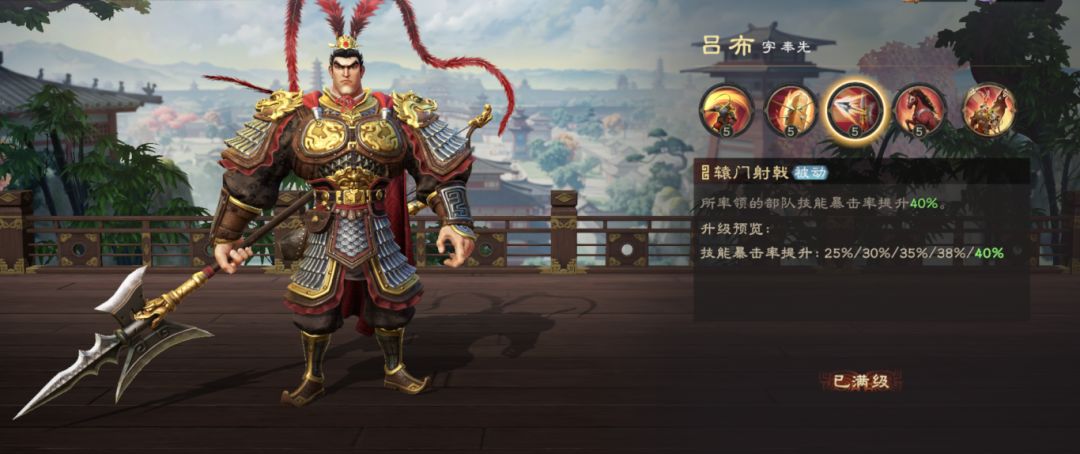 作为技能队伍,需要适当提升1技能以增加暴击后的伤害收益,天赋以攻击、技能伤害为主。吕布虽然所有技能均有增伤效果,但3技能提供的技能暴击率优先级最高,其次是4技能的增伤效果,另外吕布觉醒后可获得高额技能暴击伤害加成,条件允许的主公推荐觉醒。