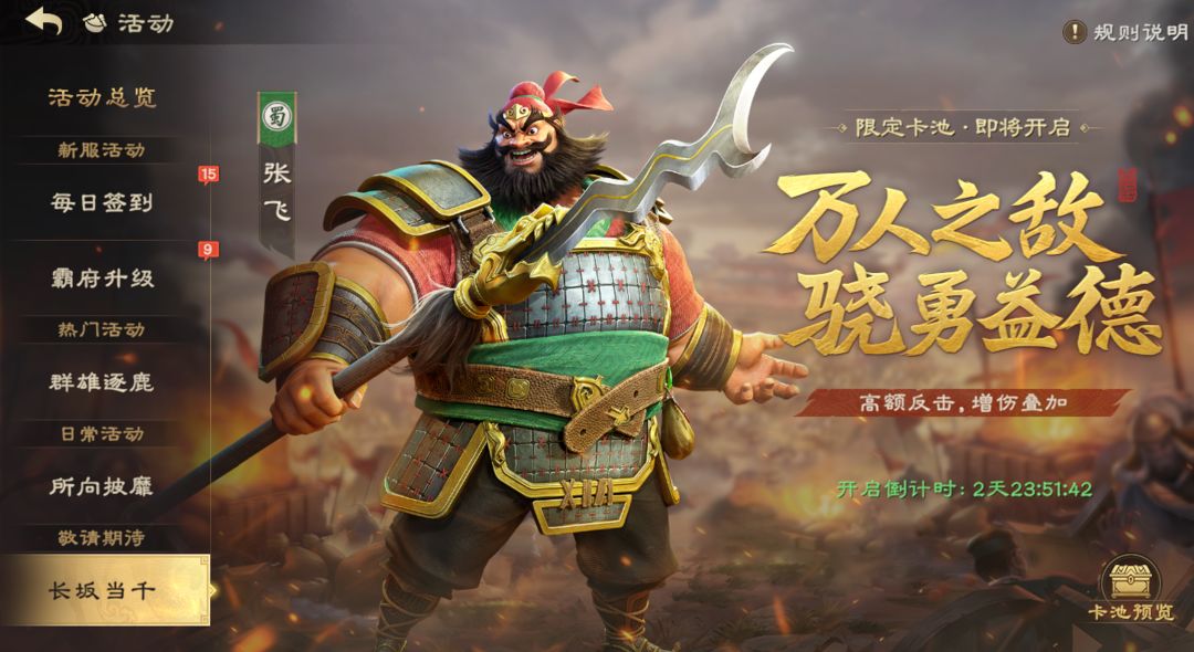 万人之敌,骁勇益德,限定卡池“长坂当千”即将在2025年1月9日0点开启!“万人敌”张飞前来觐见!