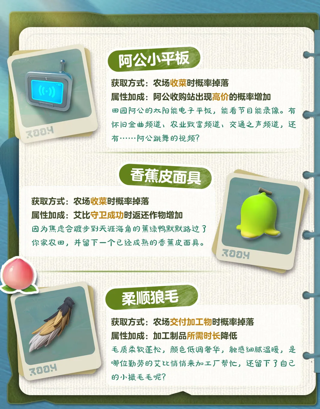 不同的农场收藏品还有着不同的增益效果呢