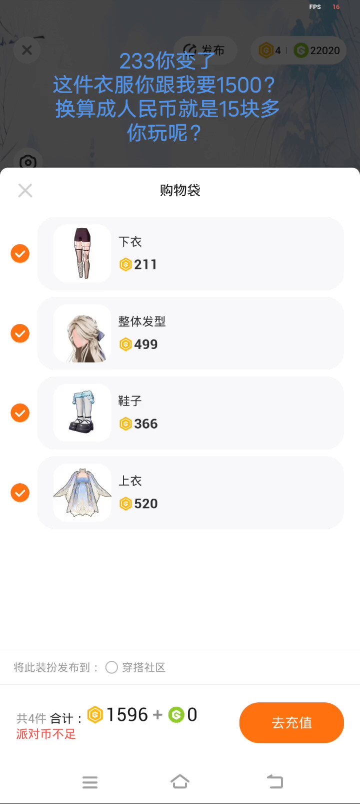 233我买四件衣服,你要我16块? 呵呵呵 以前你都是不要钱的…