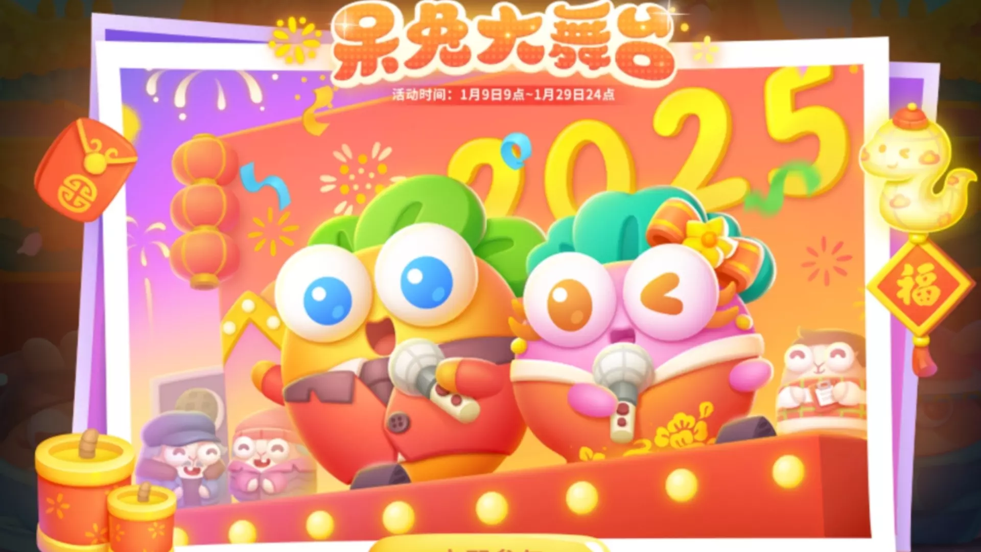 集齐所有兔兔的表演造型,可以领取蛇年新春限定室外装扮「梅香守岁夜」!五彩斑斓的烟花腾空而起,照亮了大街小巷,也奏响了新年的序曲!在这梅香四溢、烟花盛放的守岁夜,祝小伙伴们新的一年幸福美满,健康快乐!