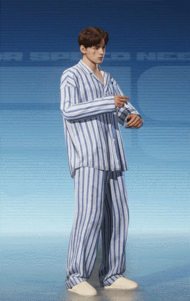上装金色龙头环绕,衣摆国风水纹延绵;下装隐隐有龙鳞纹样闪耀,尽显不凡霸气。