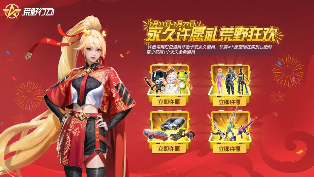 许愿期:1月11日-1月21日,每日登录可以许愿1次,最多可许4个愿望!
