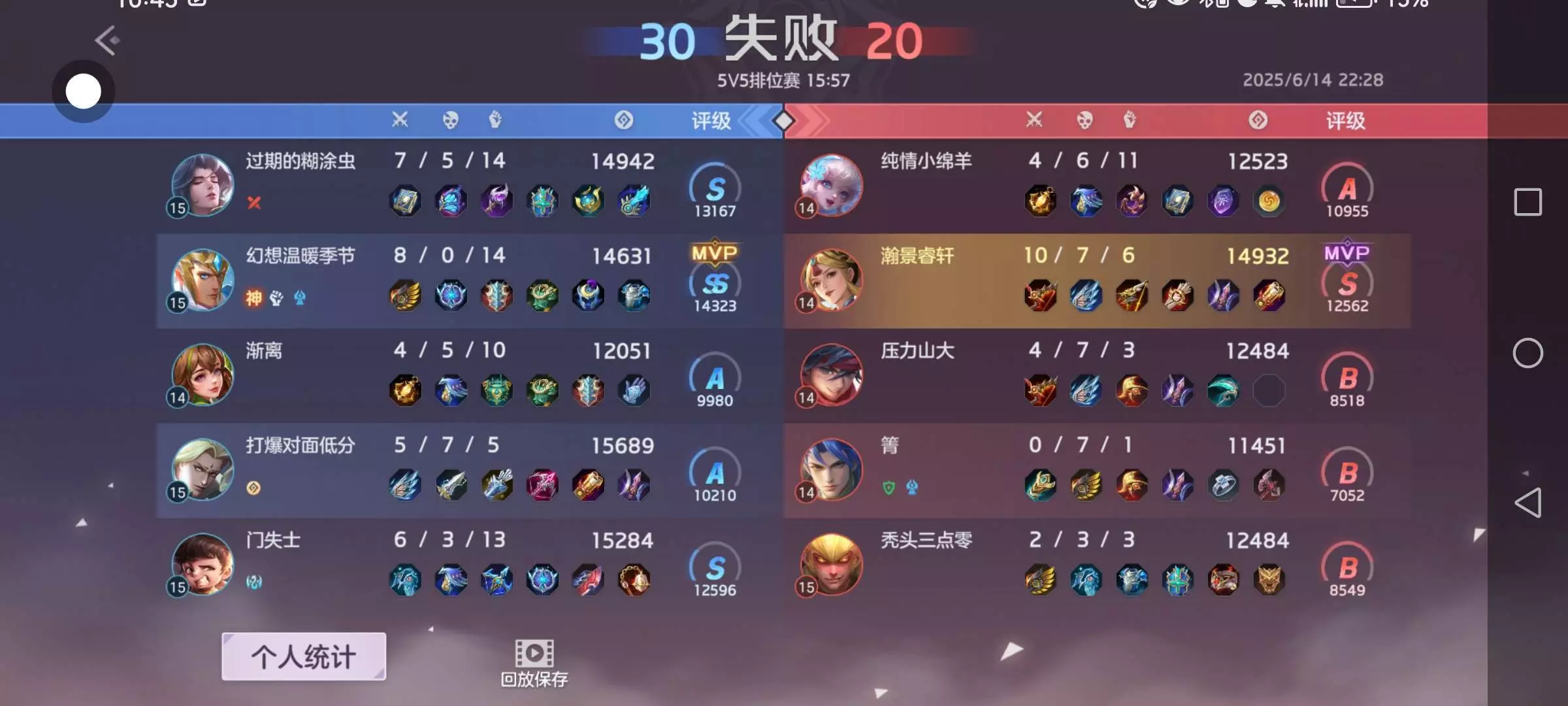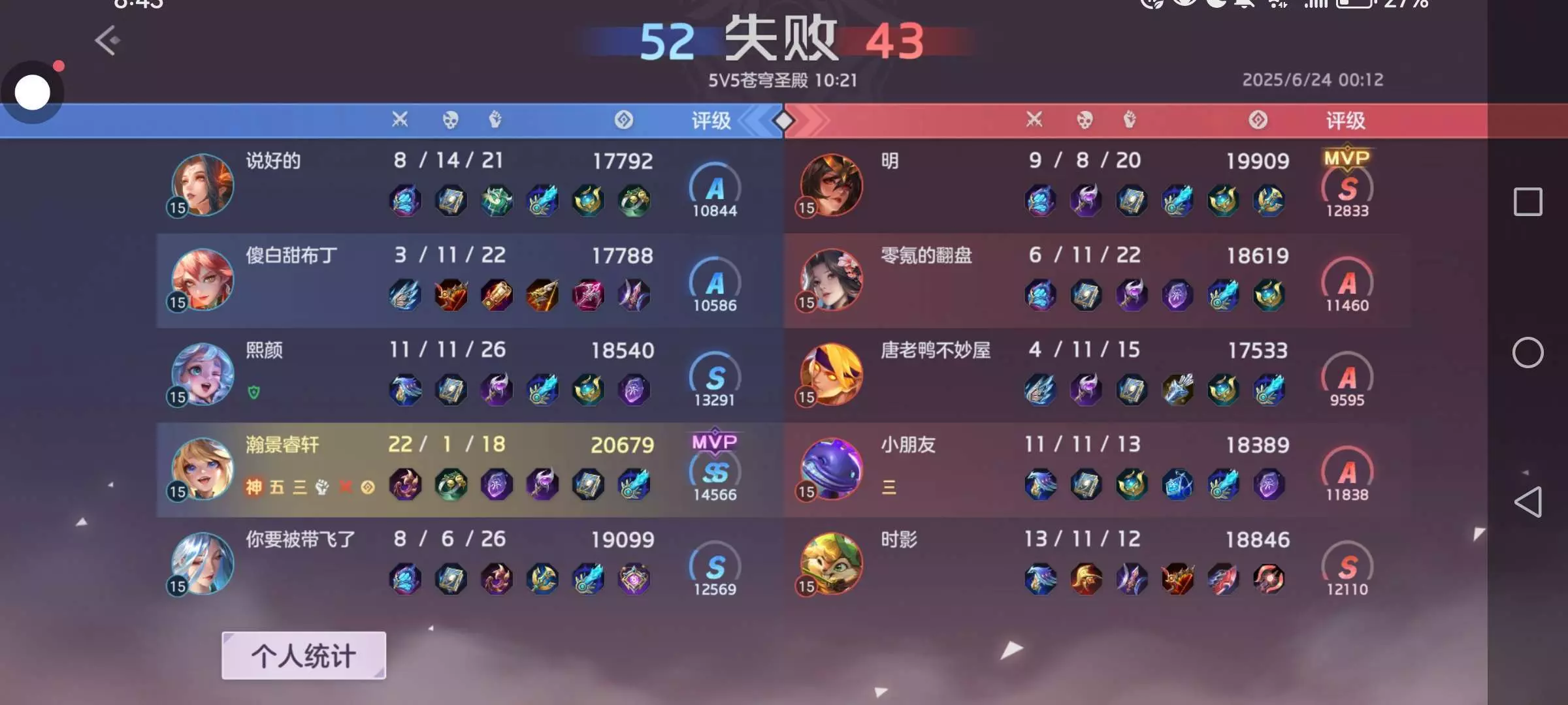 刚打了一把逆风局。服了6分钟被压到水晶,还好我去对面野区发育,不然没了