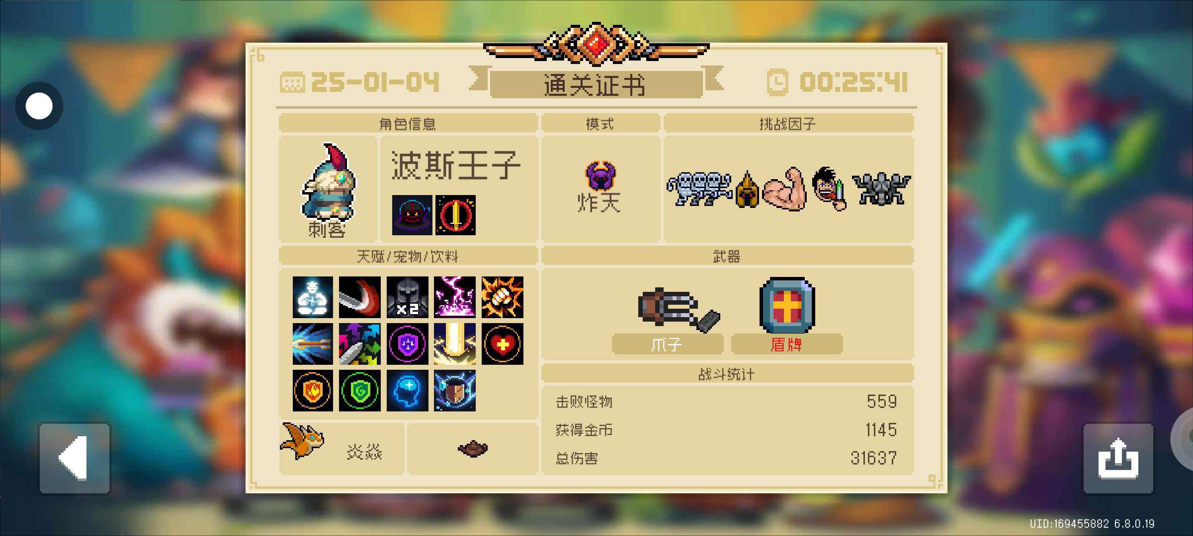 讲实话,我刚翻到这个通关证书,我们手刀玩家也真是太有实力啦(忘了为什么要带盾牌了)