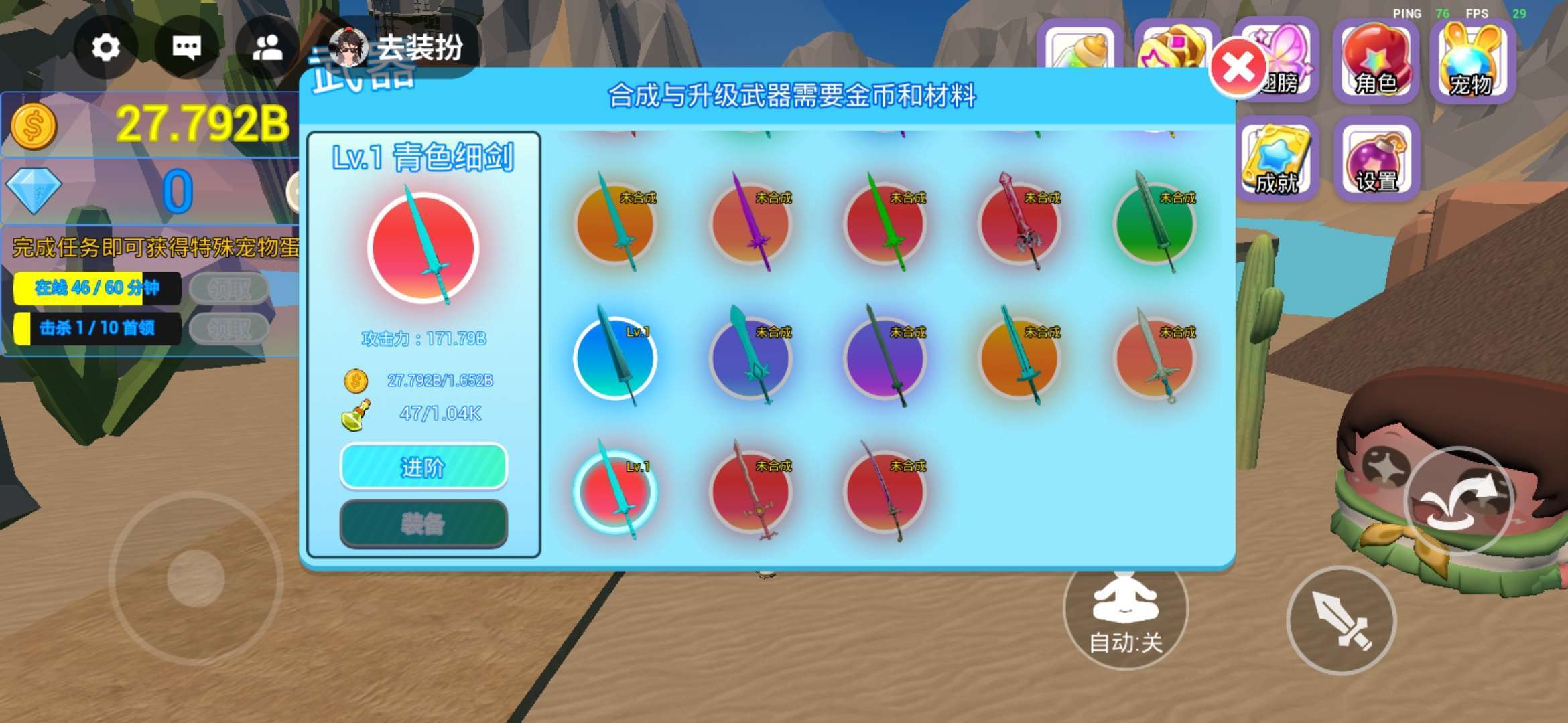 用材料和金币能解锁的最强武器。沙漠绿洲。各项属性满级。