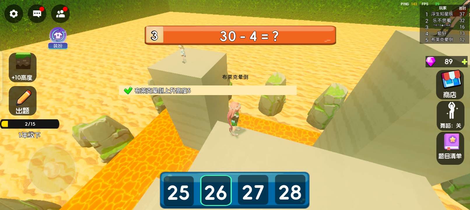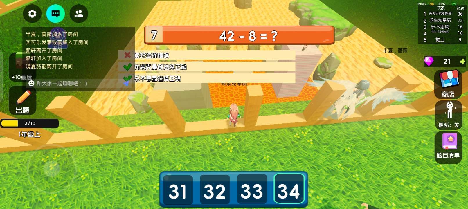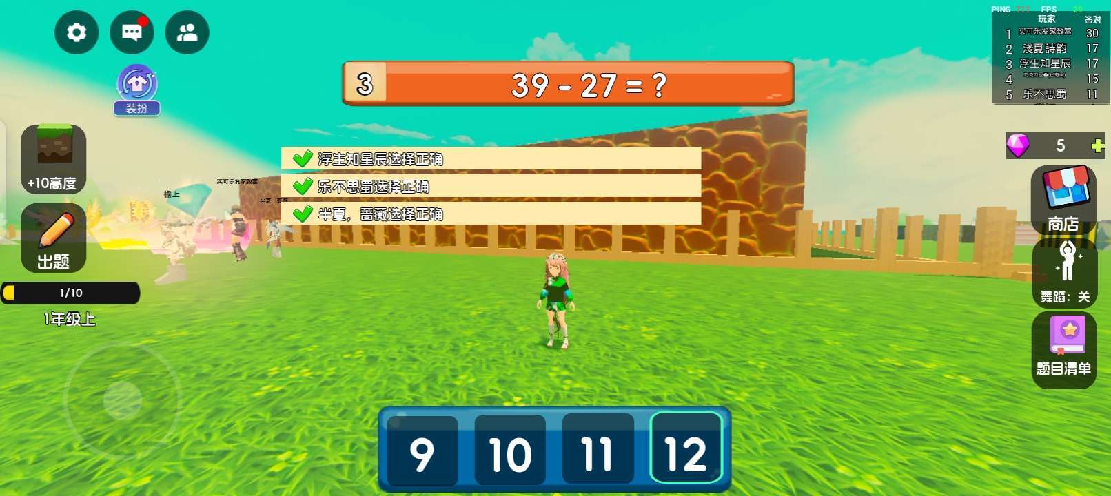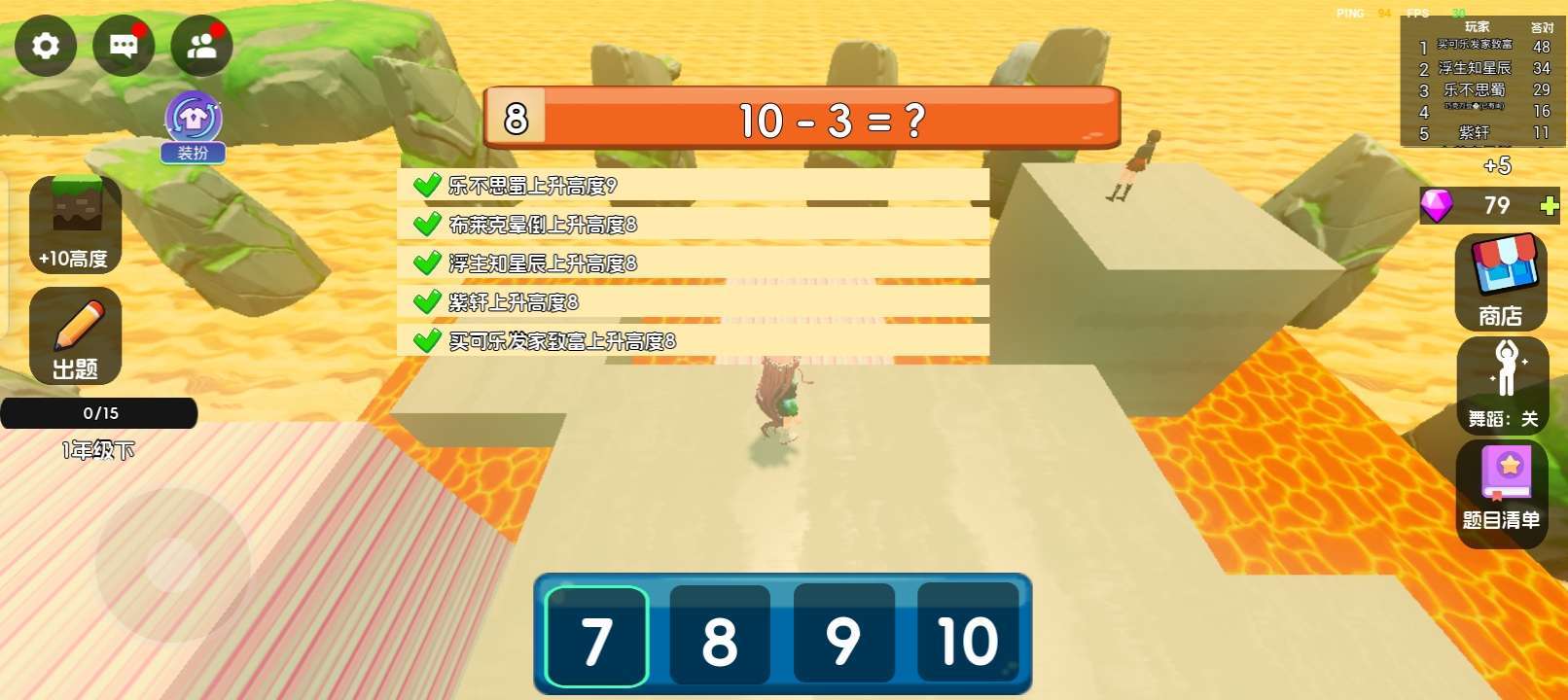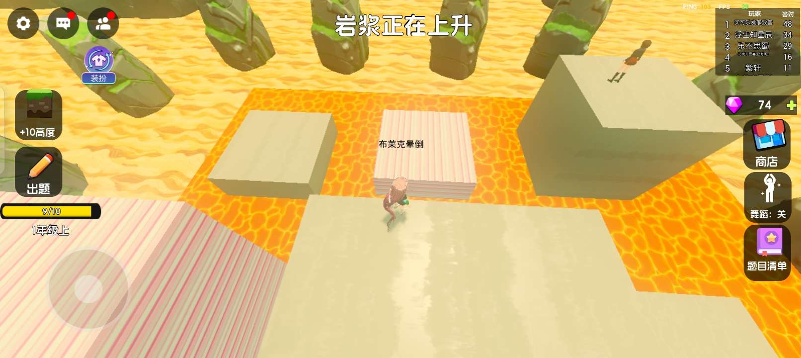 布莱克晕倒已游玩 当我们处在一个岩浆的环境下,今晚该算数学题了,学不会就洗洗睡,,答对加几个石头,同时有石头的皮肤。一旦淘汰会飘到外面,同时外面可以捡宝石买皮肤,看广告买翅膀,捡宝石买舞蹈,接着游戏开始的时候会投票,谁投的多咱们的困难简单中等又是什么?开始的时候我们会落到一个石头上,我们不能跳跃,是认真的答题,看看队友,我的描述讲完了,看来就是评价了。 🌃画面表现:很棒。 ⚖️平衡性: 。很好。 🎁游戏福利: 还要买派对币。 🎵音乐律动: 很好听。 ✍🏻游戏建议: 建议我那个他骑慢的时候就会自动掉岩浆里,你能把这个bug修改一下吗? 😵游戏难度: 简单,困难,中等都有。 🎮可玩性:都停不下来,太好玩了。 💃🏻角色刻画: 跳舞的角色都是很好的。 我的描述和评价讲完了,现在很好,作者继续努力
