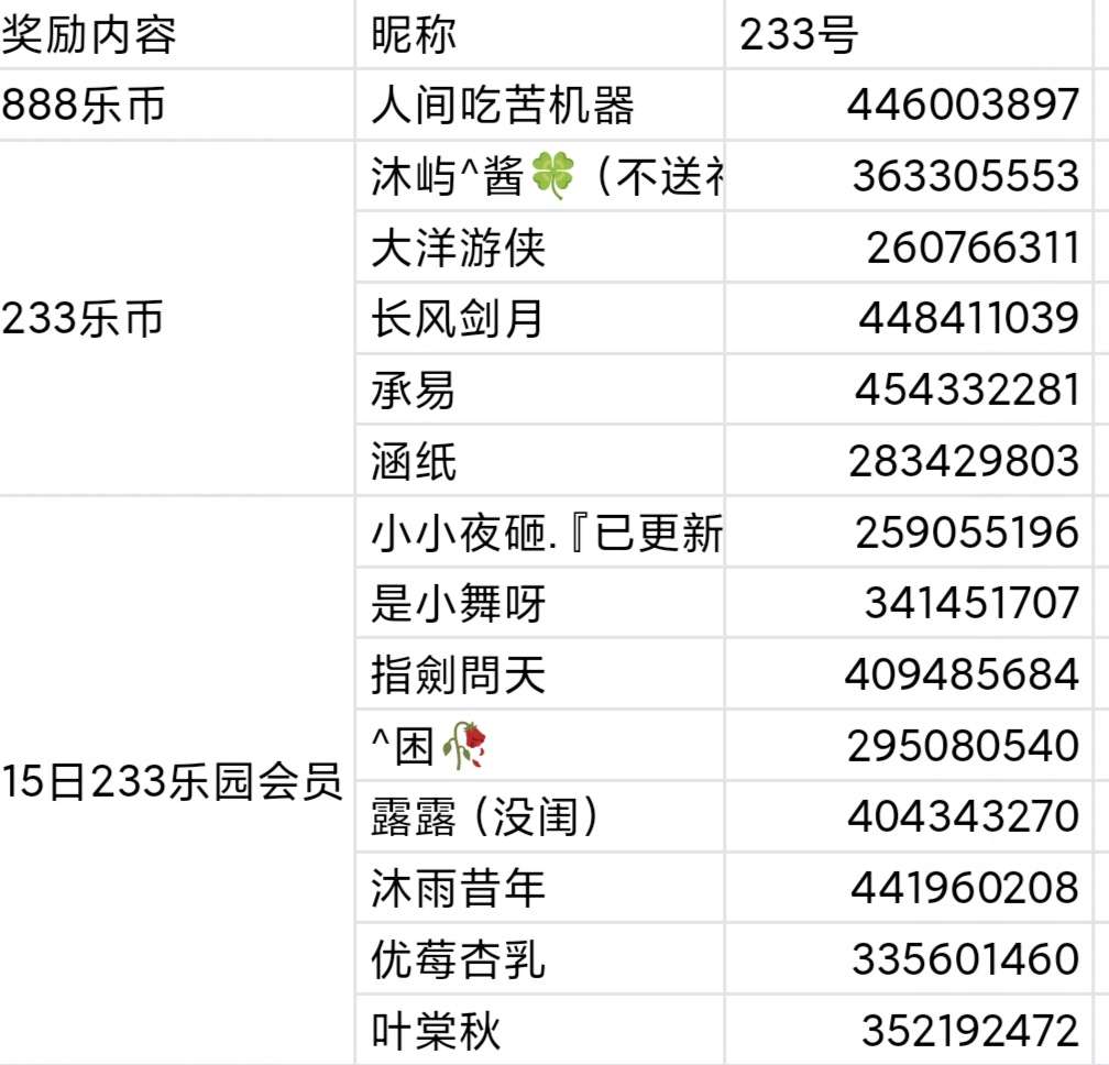 五位正确参与的玩家获得233乐币
