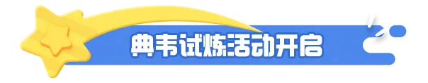 活动内容:全新英雄典韦正式上线!完成典韦相关试炼任务,获得卡牌宝箱*2以及幻梦币*6,一起来峡谷体验吧!
