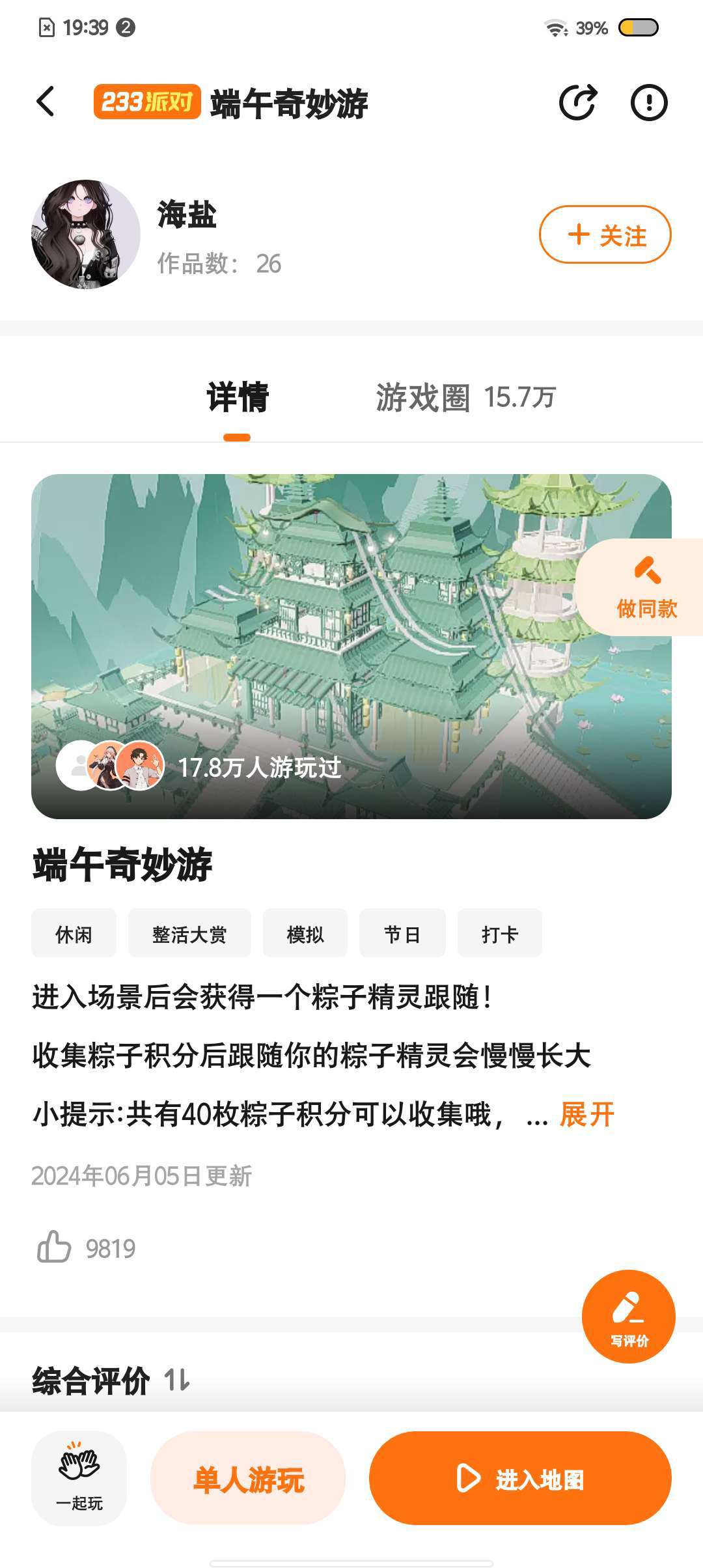 家人们谁懂啊,虽然过了端午节,但是游玩这张图又要我回到了 端午节呀!这种感觉谁懂,这张地图真的超喜欢,谁懂哇