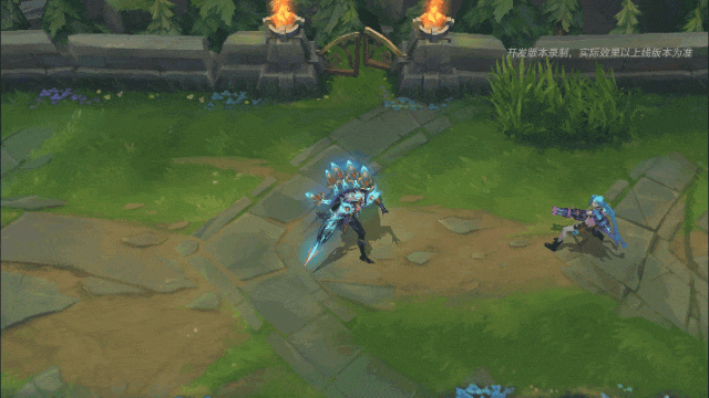 首次释放时,泰隆掷出一圈刀刃围绕自身,对附近敌人造成伤害,同时身体进入淡青色半透明状态并散发青色辉光,获得隐身效果和移速加成。红如烈焰,蓝如深海,此时还将伴有涌动的油彩全屏特效。