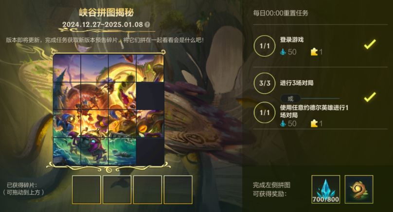 6.0版本“这就是约德尔!”即将登场~截止至1月8日,召唤师参与活动获取新版本预告碎片,完成拼图即可领取击败印记-年轮秘密、蓝色晶石*800和龙魂水晶*50好礼!