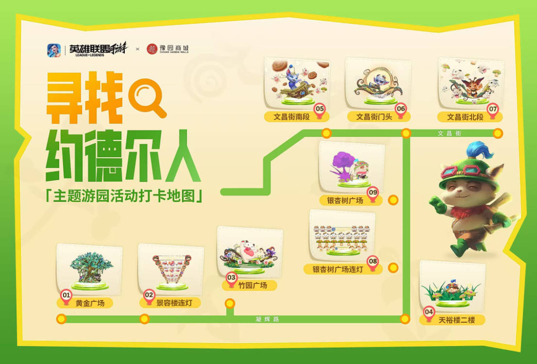 大家只需进入上海豫园跟随打卡指南参与“寻找约德尔彩蛋”活动,并前往线下指定门店或打卡点完成打卡条件,即有机会抽取限量《英雄联盟手游》周边。在园区内的数家商户还会带来联动合作,参与组队游戏或限时扫码即可获赠代金券等专属礼品。