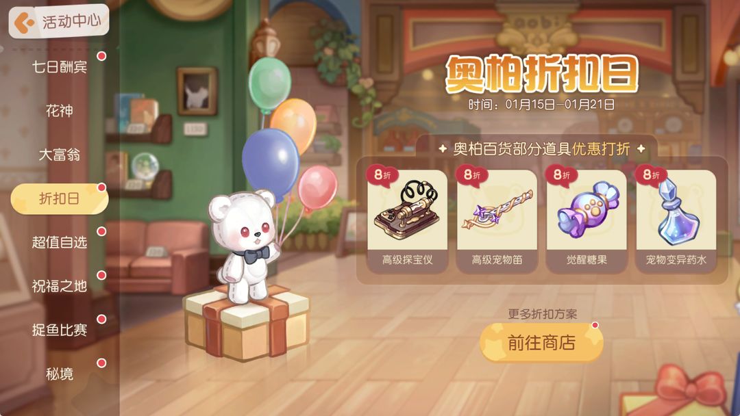 奥柏百货迎来了折扣大酬宾,活动期间,奥柏百货部分道具推出优惠打折活动,前来选购心动的商品吧!