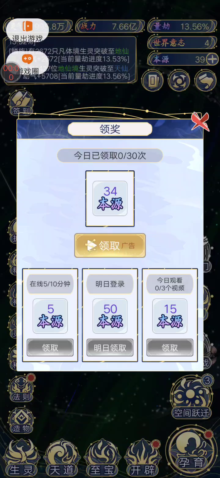 《天道:创造》是一款以上帝视角展开的模拟养成游戏,在这里你将扮演天道世界的掌控者,亲手孕育及培养数各类生灵,并通过制定法则和干涉世界内部事件等各种操作让天道世界逐渐壮大起来,以便有资格去吸收吞噬其他的外部世界从而培育出更加强大的生灵种族。 在天道世界里你将能体验到: 1. 孕育生灵 数十种生灵种族可以孕育和培养,每个种族都有自己的特点和特殊强者,各族之间也有着专属的际遇。 2. 空间跃进 带领自己的天道世界通过空间跃进去探索更广阔的世界,发现更多的资源和机会,从而让其更加强大。 3. 进化世界 通过吞噬其他世界和其他模拟操作,获取稀缺资源和世界意志,让世界实现多段进化,并以此培育出更加强大的生灵种族。 4. 突发事件 合理地干涉天道世界内部的突发事件走向,例如种族之争、自然灾害等,以保障天道世界的安全发展。 5. 探索神迹 指引合格的生灵种族前往外太空的神迹进行探索之旅,去接受未知的考验,之后将有可能获得各种稀缺的奇物和秘法,也有机会使得族人突破境界,当然也会有陨落的风险。 6. 建立秩序 通过建立和升级各种法则,以及修复空间裂痕和建设护阵来使得世界的发展更加稳定,同时还能通过投放稀有神物等操作引起生灵种族之间的争夺,形成合理的良性竞争以便在某些阶段能更快地成长。