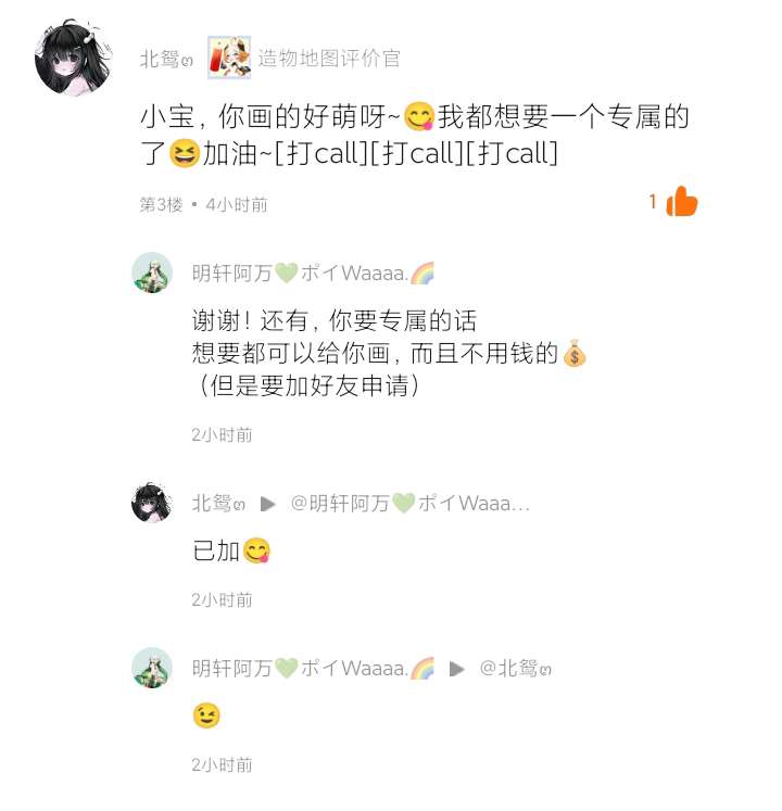 我和北鸳๓的交流:↓↓↓↓↓↓↓↓