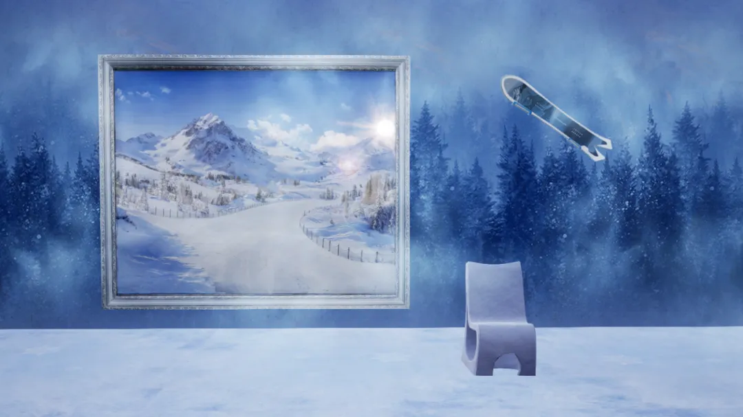 (雪原驰骋墙画,雪原冰雕椅,雪原滑雪板)