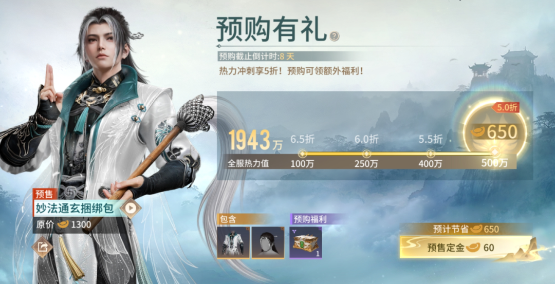 无尘外观【妙法通玄捆绑包】预购已开启!参与预购,积累全服热力值,最高享5折优惠!