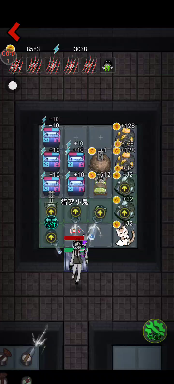 《猛鬼宿舍》是一款2D塔防小游戏。游戏中玩家需躲避猛鬼的追捕,寻找适合自己的宿舍躲避,并发展经济建造炮台,抵御猛鬼。游戏中玩家只可以在房间中的空地板上进行建造,玩家点击空地板后,出现建筑菜单。游戏中玩家需要根据自己当前的经济选择性建造建筑,发现一条符合自己发展的道路。玩家需要将鬼击败或者抵御至天亮方可获胜,反之鬼抓到玩家则玩家失败。