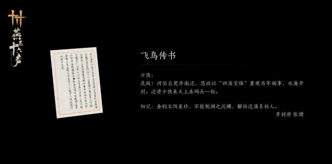 随着一封飞鸟传书而来,江湖传说中“北投契丹”的河伯现已南还。箭在弦上,已是危极的召唤!