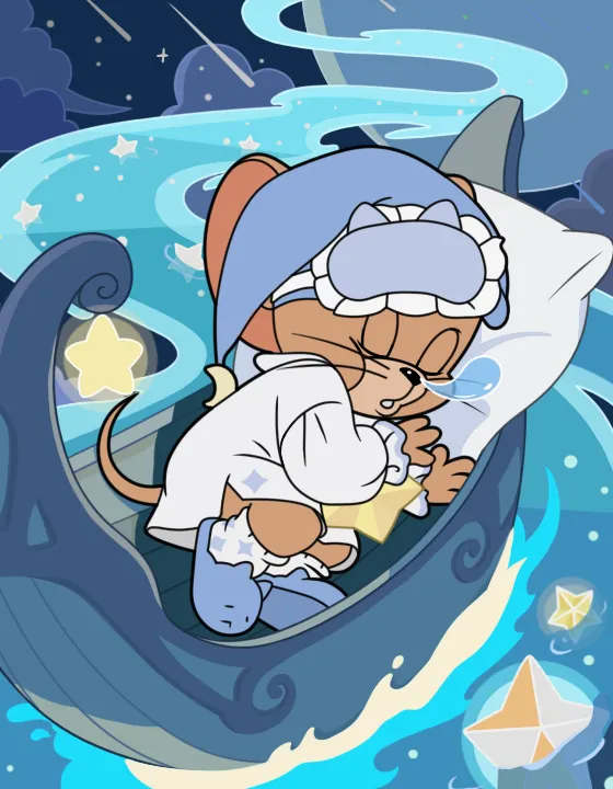 最近天气降温,梦游杰瑞换上了更保暖舒适的睡衣进入甜甜梦乡。蓝色睡帽软软地搭在头上,顶端月亮装饰轻轻晃动。可爱的浅蓝色眼罩和毛茸茸的棉拖鞋平添了几分温暖,梦游杰瑞脸上挂着笑,似睡非睡地沉浸在如梦似幻的美妙梦境中,如此美好的一幕下大家可要当心哦,别惊扰到他的好梦啦!