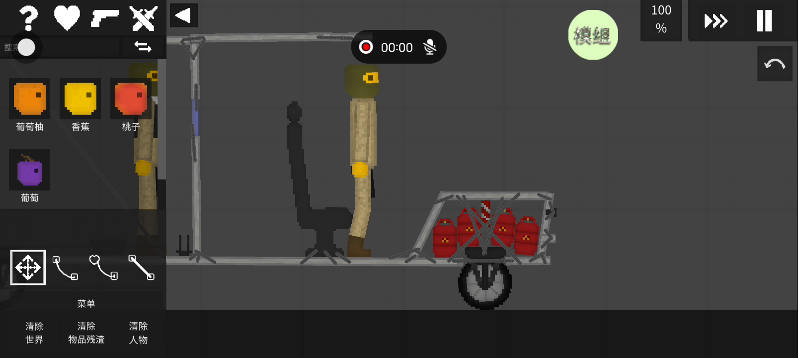 水果游乐场即将迎来0.2.3版本更新,乐园正在加速上线中 0.2.3更新内容: -全新冬季森林地图 -新增跑步项目 -新增近战武器、车辆等等物品 -对上一版本的部分物品卡顿进行了修复 更多更新内容请等待游戏更新后体验吧~ 【游戏模组下载后,可进入地图,左上方滑动到保存按钮,点击即可看到所下载的模组~】 这是一款物理布娃娃沙盒游戏,包含不同类别的各种物品供玩家使用。在这个游戏中,您可以身心放松,你可以建造某种机械,或者某种交通工具,或者某种建筑,或者你可以不建造任何东西只玩布娃娃,都能帮助你缓解压力。