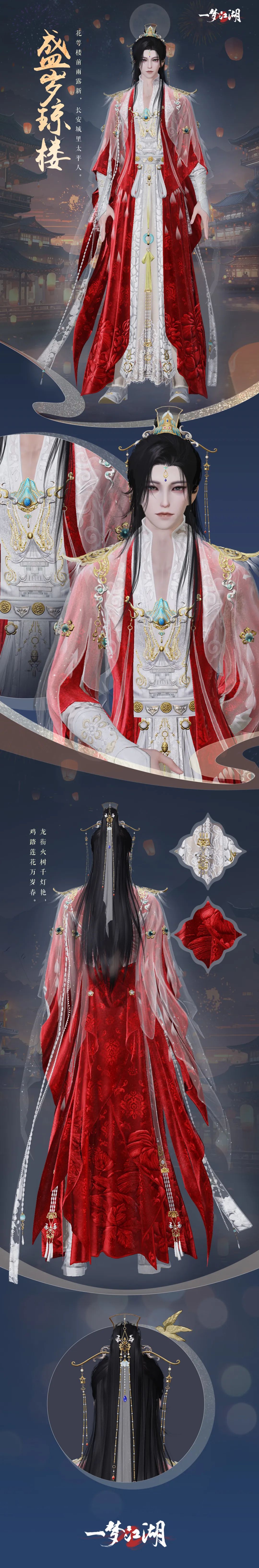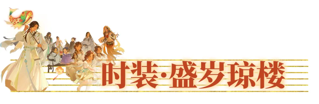 年关将至,云锦楼大师傅以城中人们欢庆祥和的盛世氛围为灵感,制作了绝版新春时装·盛岁琼楼,与少侠们共迎新年!
