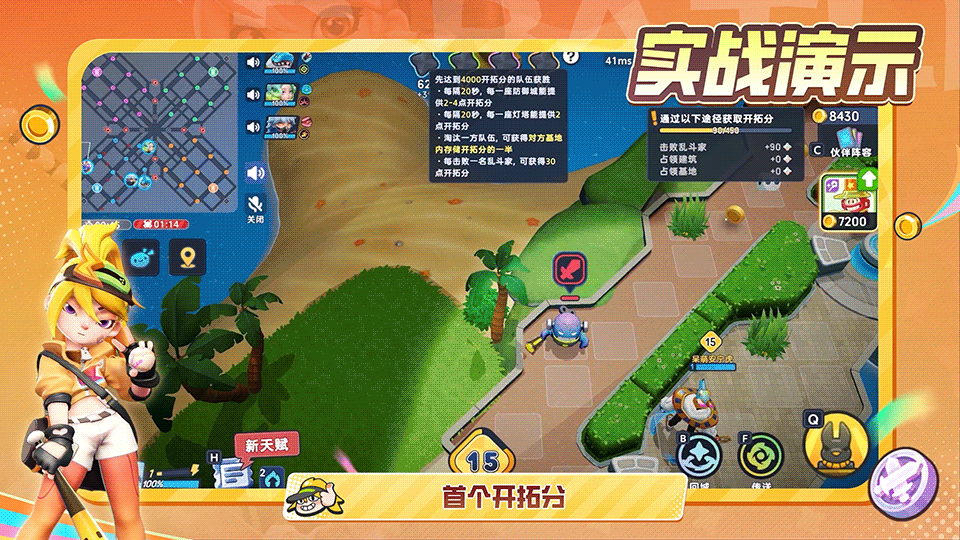 在乱斗场上通过赢得对抗或者占领其他队伍的防御城,都可以获得相应的开拓分,占领其他队伍的基地还能获得对方的全部开拓分!在一场对局中,首个开拓分达到4000的队伍将获得胜利。