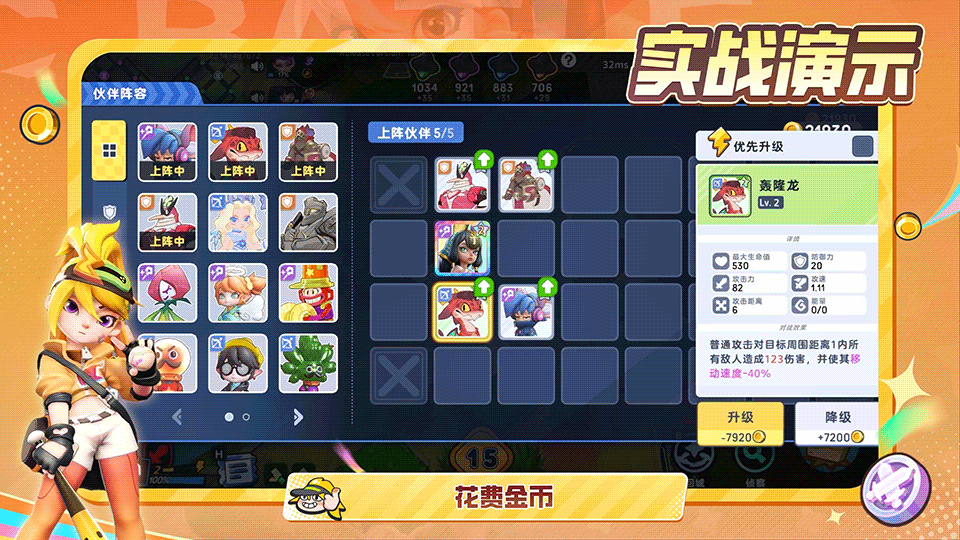 如果发现自己的阵容搭配不合理,可以点击伙伴阵容按钮,根据需要重新调整上阵的伙伴阵容,同时还能使用金币对伙伴进行升级。针对性地调整阵容和升级伙伴,提升整体的战力,能帮助你在对抗中占得先机。