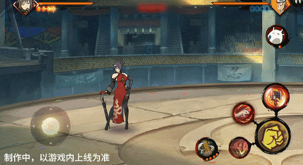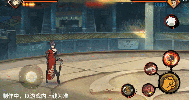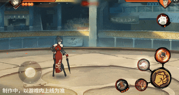 新春红豆手中的伞化作一条蛇咬向前方,若命中将抓取敌人,将自身拉到敌人身边,环绕一圈后踢飞敌人,再跃起用伞追打。