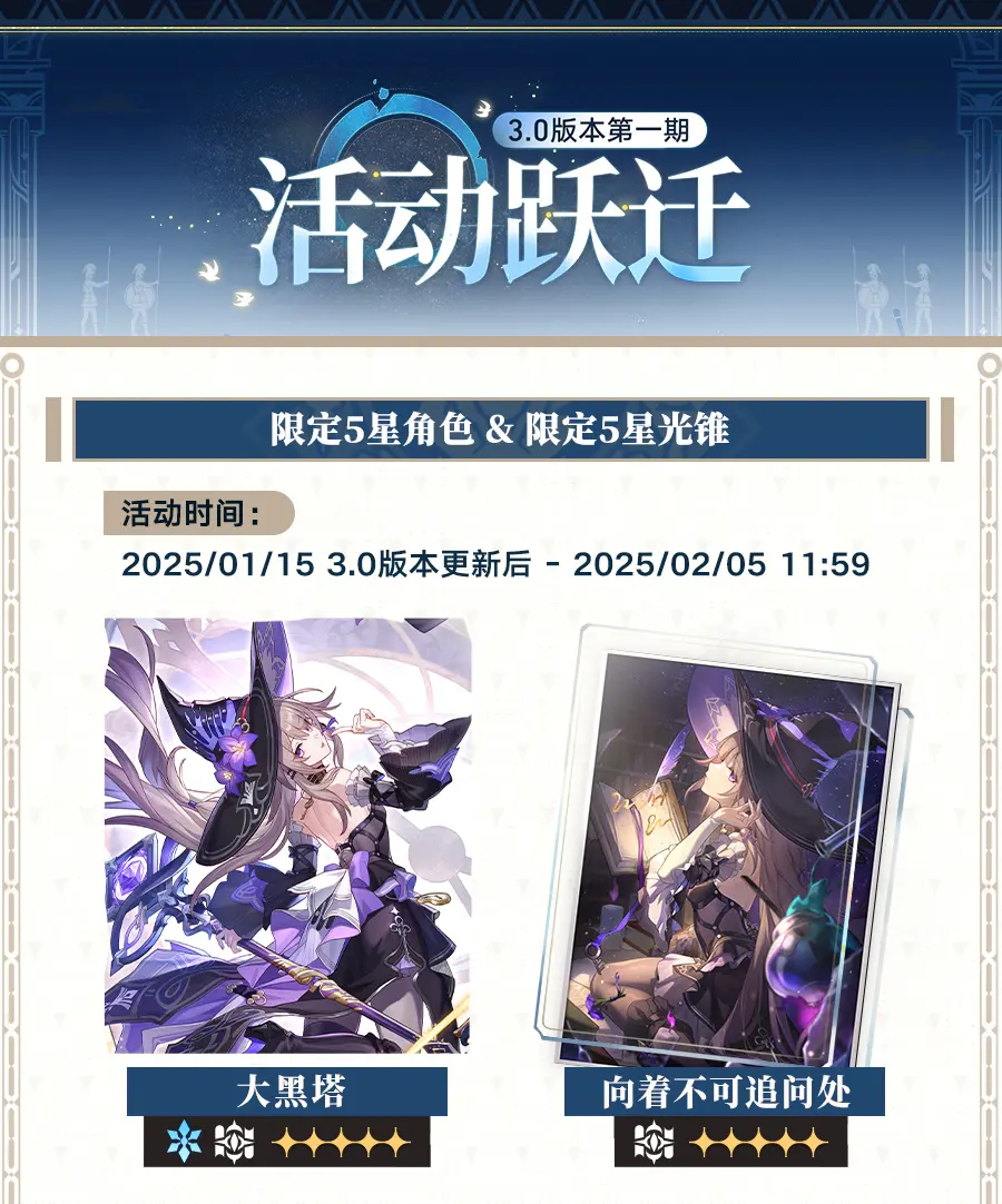 本期活动跃迁时间为 2025/01/15 3.0版本更新后 - 2025/02/05 11:59。
