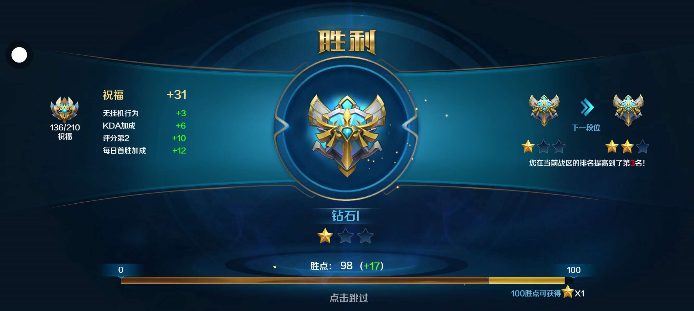 就差一点点就能上钻石二了