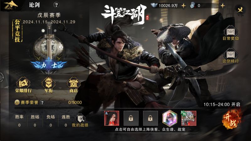 而想要展现你超高的武力值,则离不开《斗笠江湖》中的1v1比武玩法“天下武宗”,这一场侠客之间的争锋,只有不断提升战力才能持续在海选赛、淘汰赛中晋级,最终争夺【武道宗师】名头,可以说是每一个侠客的终极追求。