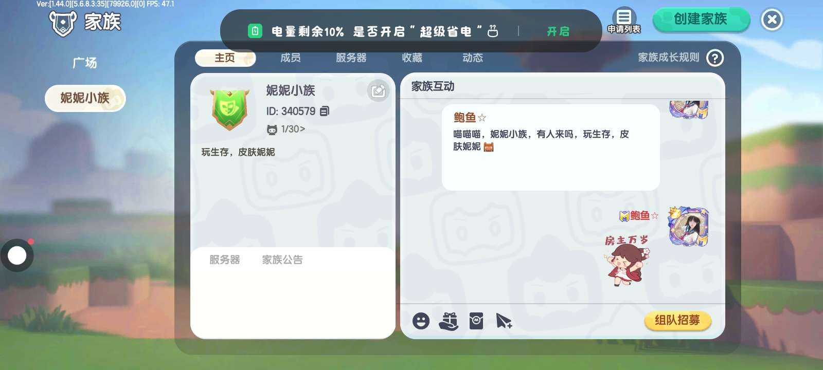 喵喵喵,妮妮小族招人,玩生存的时候皮肤妮妮,ID340579