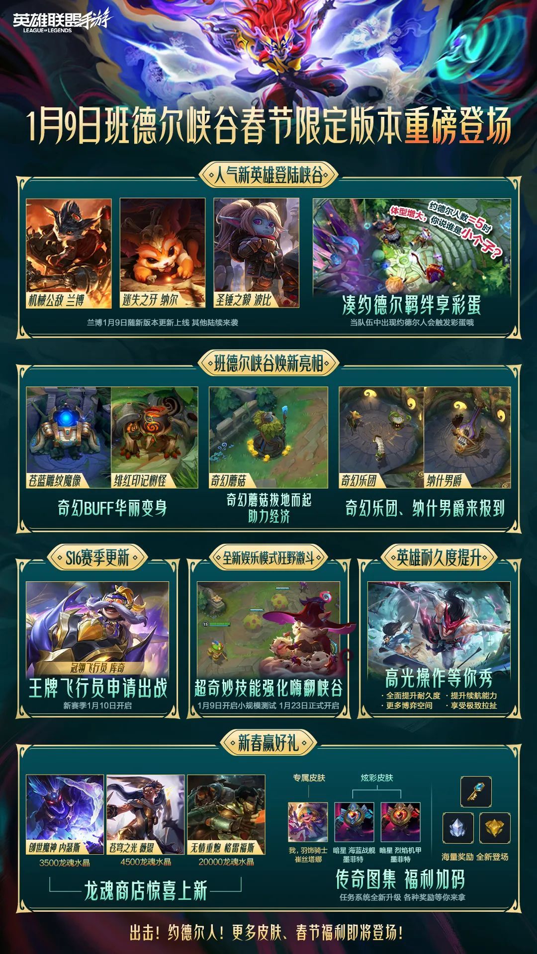 出击!约德尔人!更多皮肤、春节福利即将登场,召唤师们,准备好迎接这场狂欢盛宴了吗?峡谷等你哦!