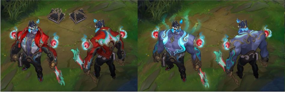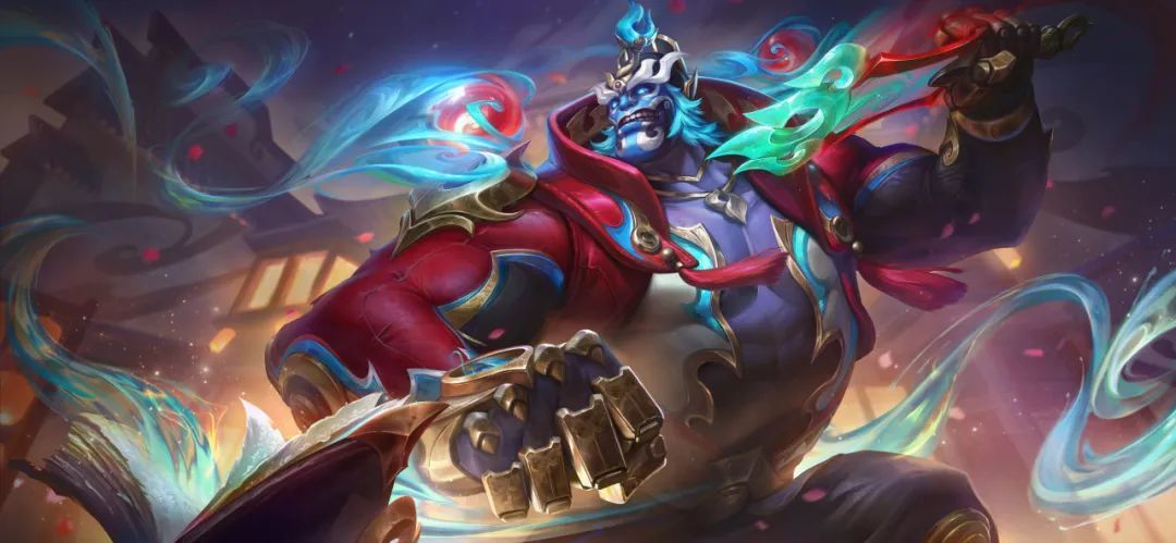 那一抹幽邃的蓝色脸谱,恰似他在战场上冷静沉稳、坚毅果敢的性格写照。蒙多虽以悍不畏死的战斗风格闻名,蓝色脸谱却更凸显出他如深海般深邃的战斗智慧,在召唤师峡谷中穿梭奔突时,宛如一道幽冷的蓝光,令敌人敬畏。