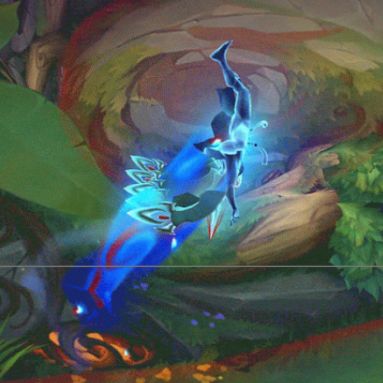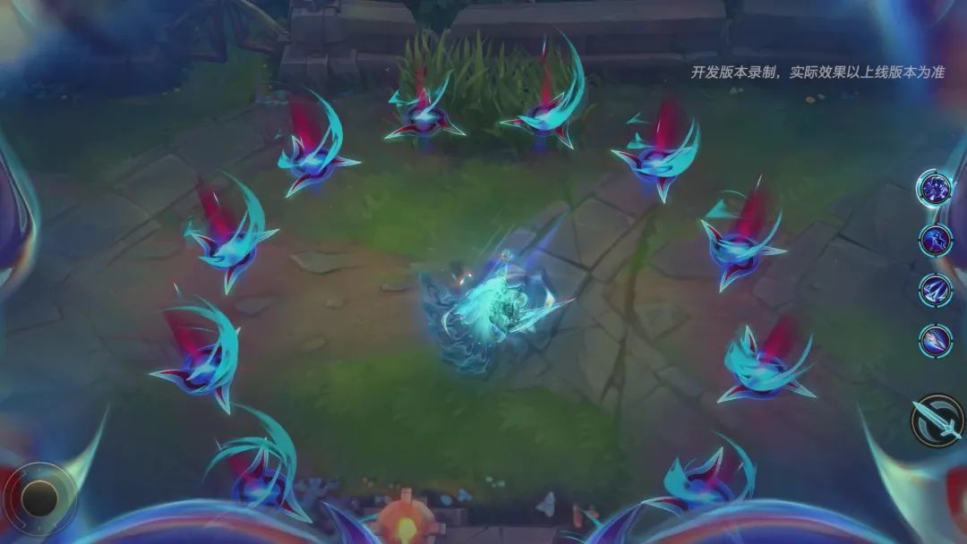 在泰隆的核心设计方向上,有多个突出特点。泰隆的E(3)技能翻越地形是其最特殊的游戏体验,因此我们将这部分设计着重进行升级,泰隆会有更多动作和身体特效表现,全身环绕着特殊的光晕,以独特的翻斗动作进行位移,整体表现更加流畅逼真。