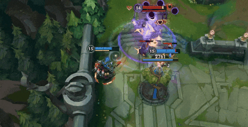若是遭遇敌人GANK,也可利用E(3)技能:电击鱼叉和W(2)技能:破碎护盾营造速度优势,灵活后撤。