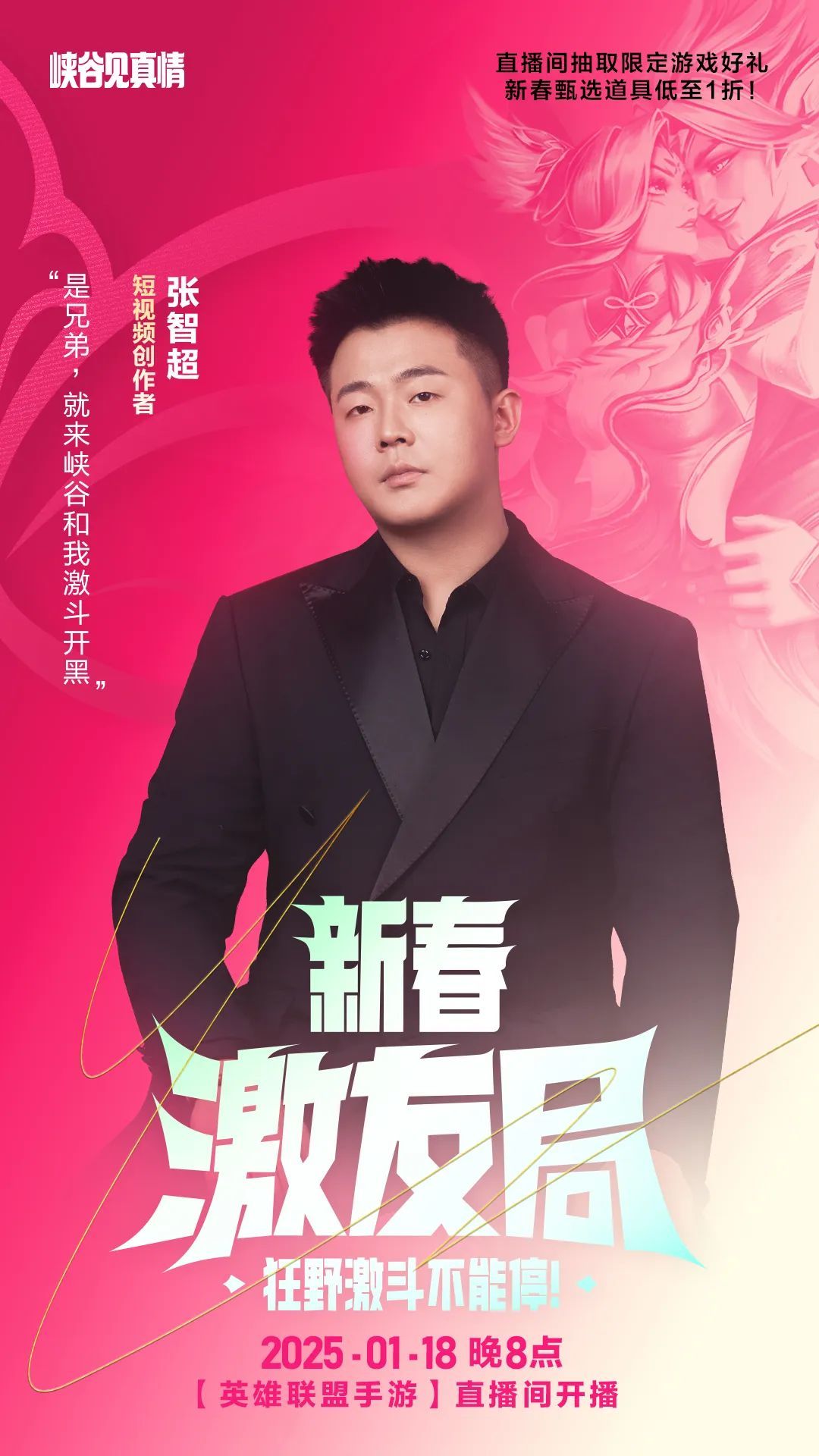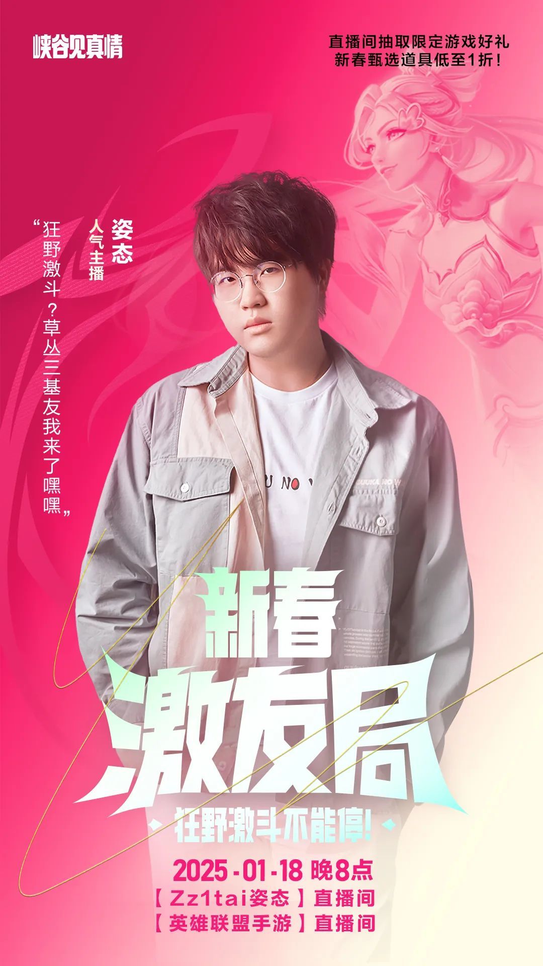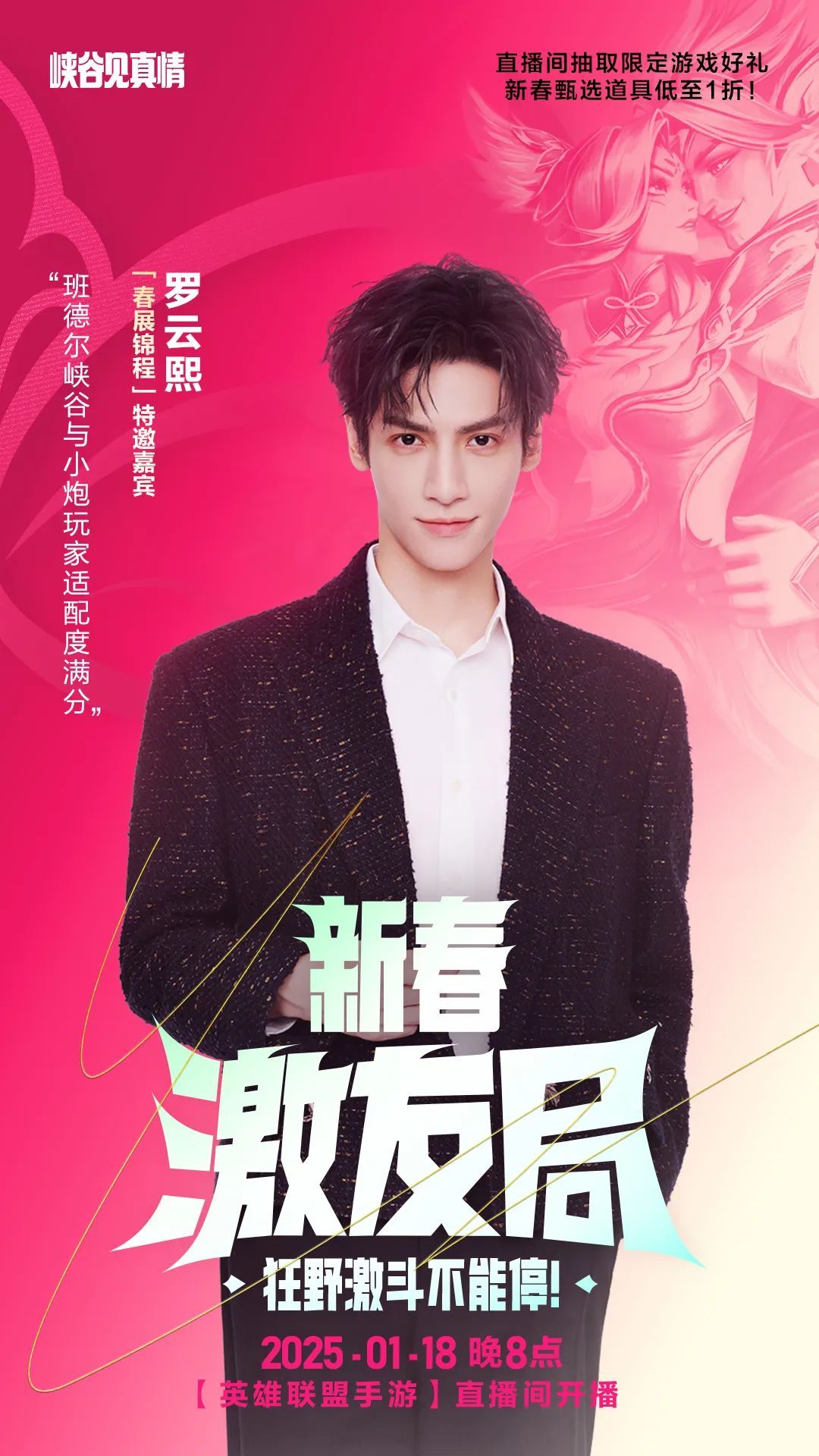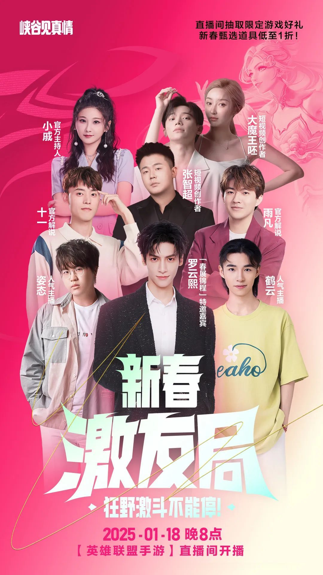 ◆「春展锦程」特邀嘉宾罗云熙将携手人气主播姿态、鹤云、短视频创作者张智超、大魔王呸,以及《英雄联盟手游》执行制作人David Xu和《英雄联盟手游》产品负责人John Rong一起展开约德尔之战!