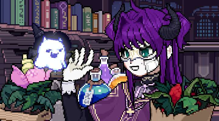 像素少女波卡,紫色少女。绿色少女